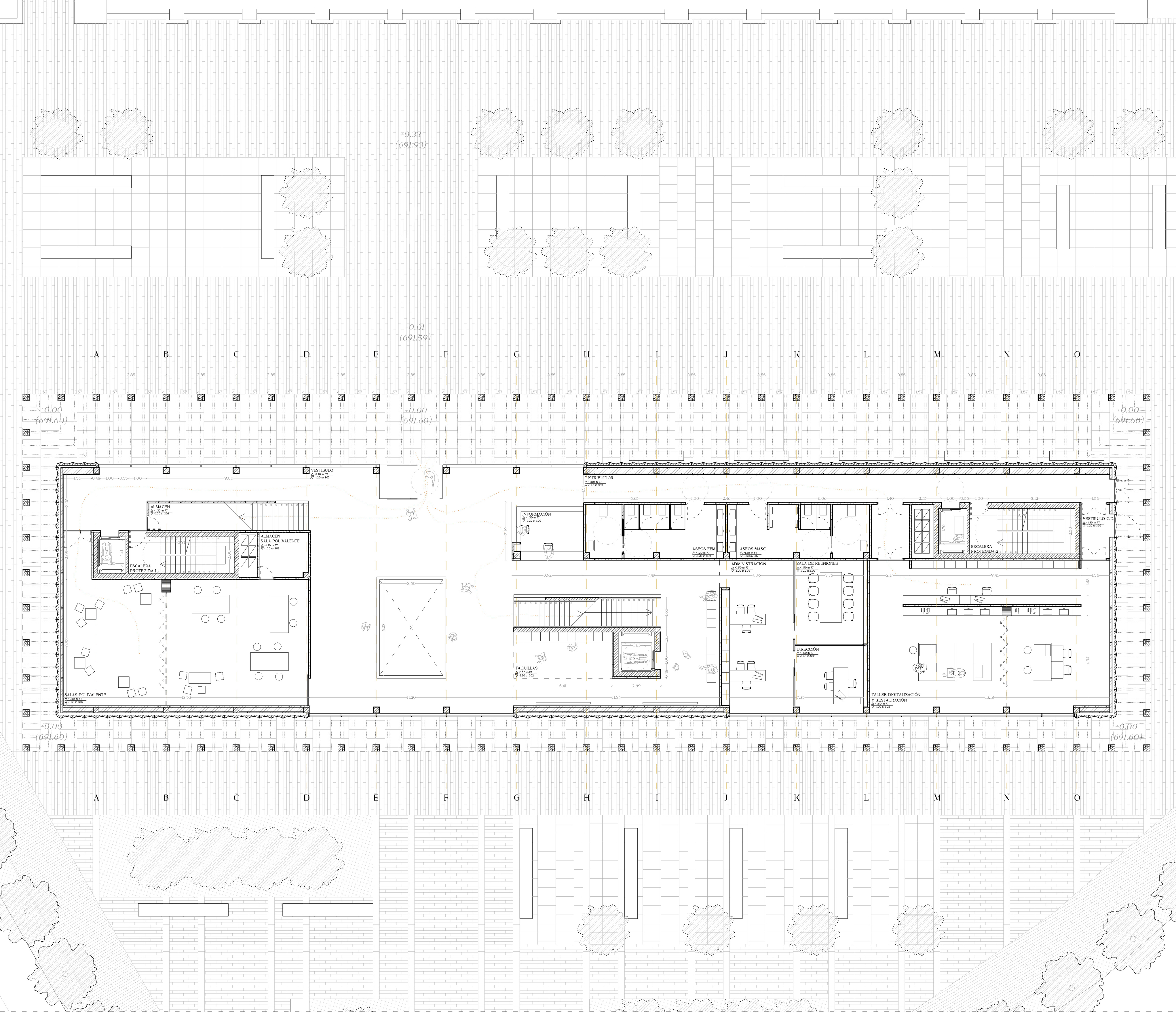 En la última planta se generan 14 gabinetes de estudios individuales permitiendo un espacio de trabajo íntimo al investigador.