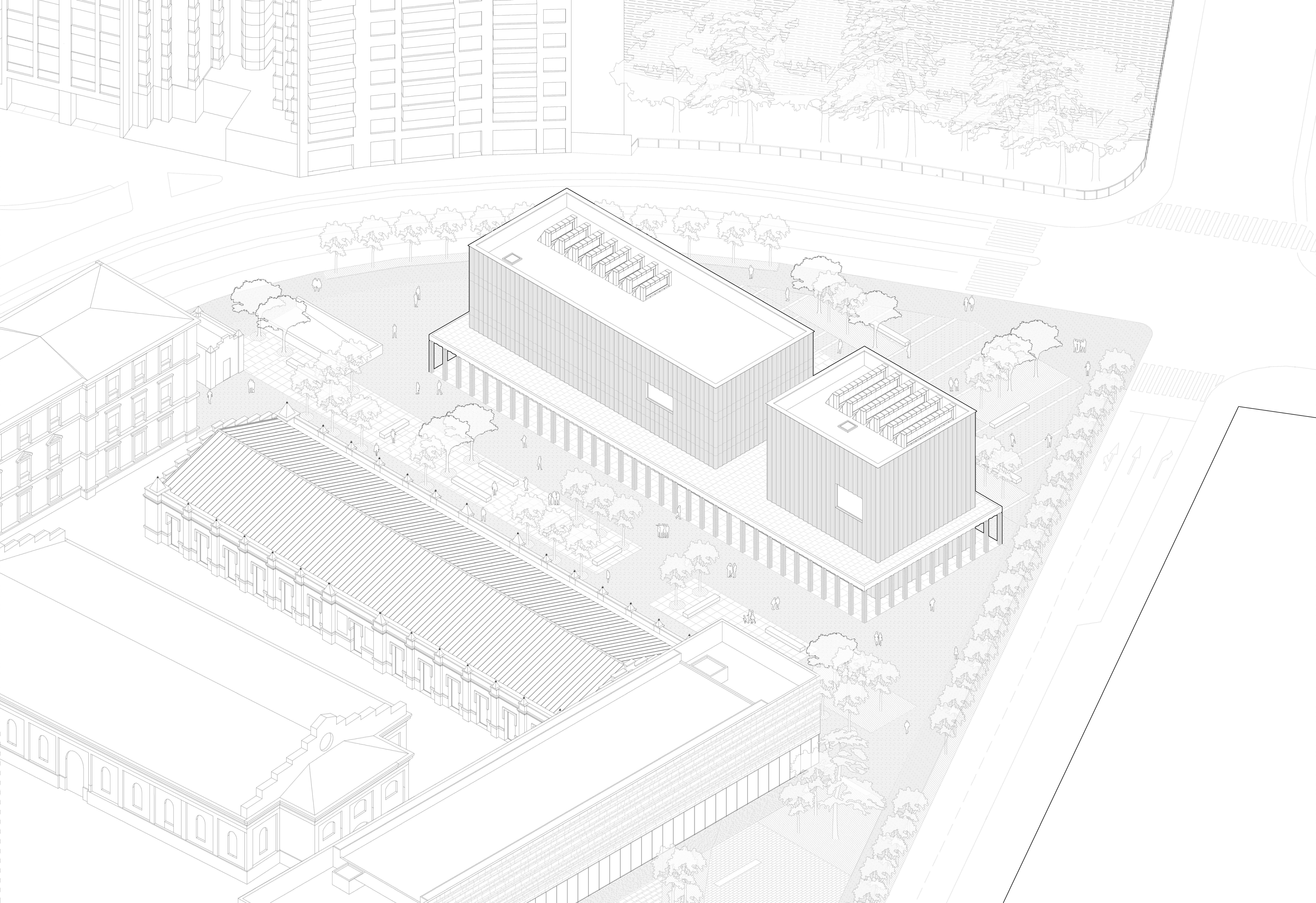 El proyecto resuelve una zona de indeterminación urbana, sobre un solar previo de uso militar se enmarca una biblioteca y centro de estudios, mediante la realización de dos plazas que permitan la transición entre la ciudad y el proyecto.